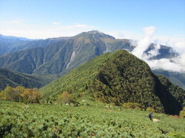 後ろを振り返ると仙丈ケ岳と双子山