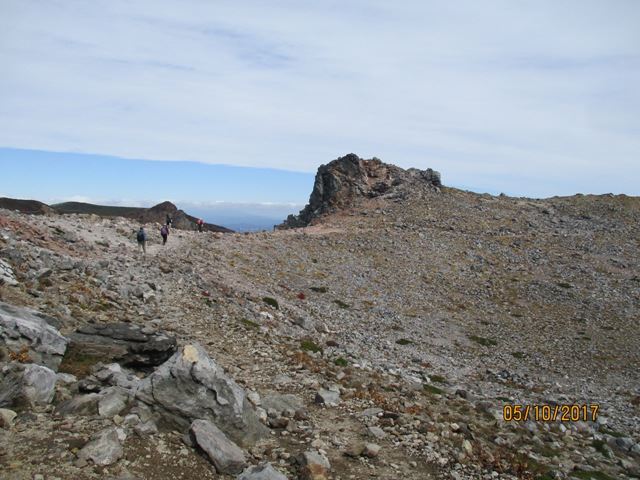 お鉢を一周します。火口は噴煙も無く、土砂で埋まり火口と言う感じがしません