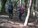 小ピーク、コタラ山と越えて、百蔵山に到着。お陽様が降り注ぐ中、ゆっくりと昼食をとりました。ここは秀麗富嶽十二景の7番山頂です。百蔵山から先に進み、分岐を左折、下山します。水場があるのですが、5分くらいで下山口となり、途中にあれば良いのにと思います。