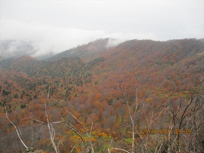 中腹は紅葉真っ盛り