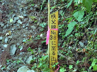 真名井橋を渡り、直ぐに右折、5分ほど歩くと、秩父線No.38に至るという標識が右手に出てくるので、そこから登り始めます。登山道から稜線まではかなりの急登です。