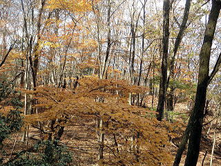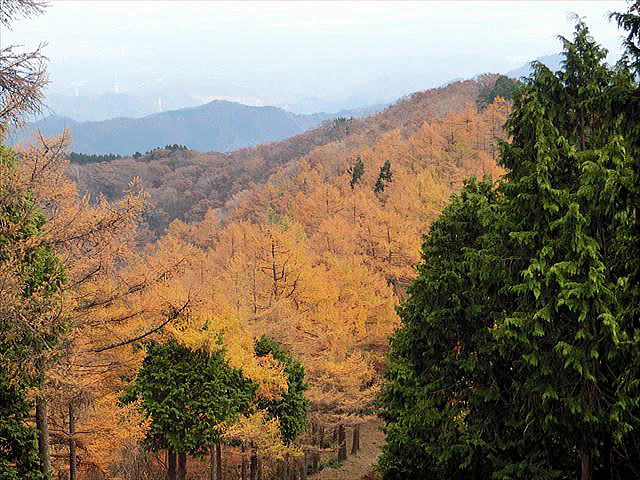 真名井沢ノ頭まで登り、ここでお昼をとりました。ここから先は一般の登山道になり、歩く人と行きかいます。振り返ると、唐松が黄葉していました。