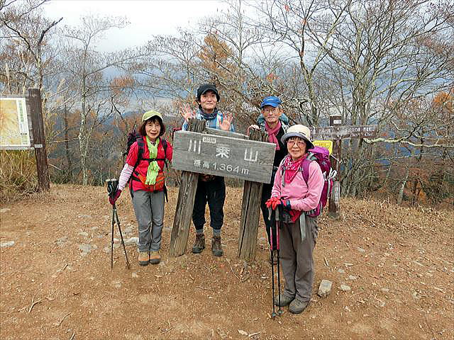 川苔山山頂(1363.3m)。落石のため、百尋の滝からの登山道は閉鎖ですが、人気の山だけあって、人が多かったです。
