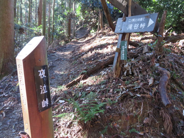 夜泣峠に到着。ここから右に折れ、滝谷峠へ