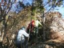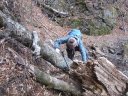 | 【コメント】2017年最後の忘年山行に行こうと、Iさんの希望もあり埼玉県と群馬県の県境にあるこの山を選んだ。 西上州の秘峰だそうだ。アクセスも遠くて行きにくい山だ。せっかくなので周回コースとした。 全体的に岩場が連続する緊張感ある山登りである。それと落ち葉が積もり、登山道がわかりにくい所もあるが注意して見て行けばテープを見つけることができる。 年末だったためか最初から最後まで誰にも会わずに山を貸し切りで楽しんだ。 ただ帰りに林道に出てから道を反対に進み、30分進んだところで間違いに気づきまた戻ったため1時間余計に歩いてしまった。帰ってから調べたら地図には林道工事中と書かれており、地図にはない新しい林道ができていた様子。立派な道だったが、どこに行く道かは不明。 最後の詰めが甘かったなあと反省した山行であった。 コメントMS |