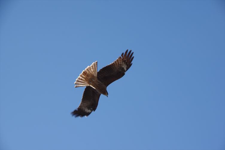 悠々と青空に舞う鳶(トビ、とんび)
