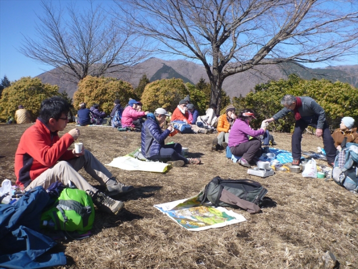 青空の下で昼食