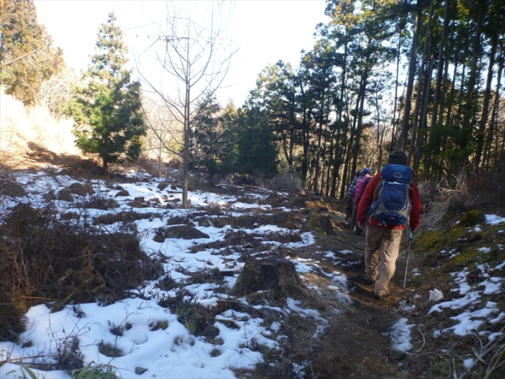 大雪の名残と凍った東尾根を下る
