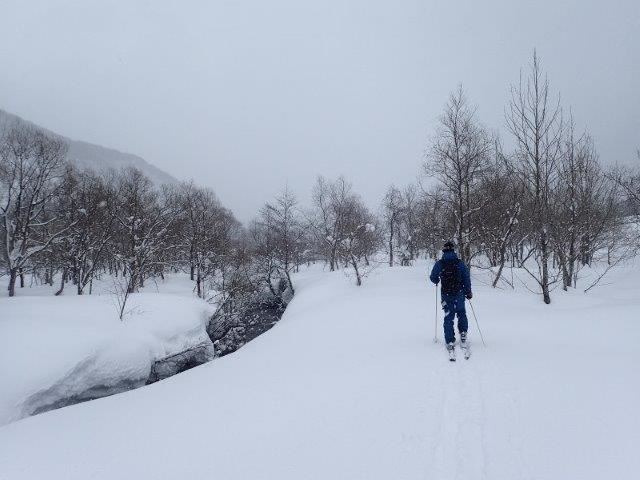 川沿いにシール歩行訓練です