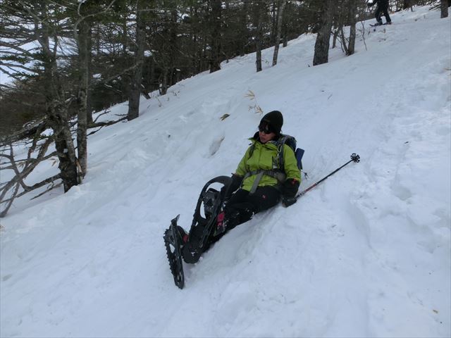急斜面を下りています