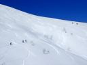 最近の比較的易しいルートは以前に降りていたので天気も見通しもよく問題なしと滑り始めるが、実はここからが大変な下りとなった。