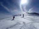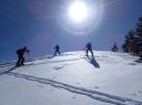 今日は時間の余裕があるので山頂で存分に景色を眺め、田代スキー場へ続く尾根を下り反射板地点を滑り抜けて大斜面を滑走、午前中のこともあり雪質はまあまあで存分に山スキーを楽しみながら12時に和田小屋へ戻った。
