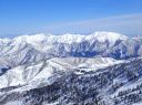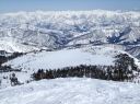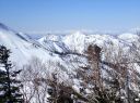 雪は適当にしまっていて潜らず歩きやすい。昨日に続く無風快晴の天気で、すぐ近くの苗場山、そして妙高山方面の山々、さらに遥か遠くに北アルプスの白馬三山がよく望めた。