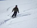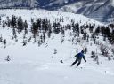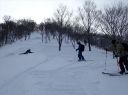 何本かのシュプールがあり後をついていくが、いかんせん夕方の気温の低下も相まって雪質が悪く、足首下ほどの雪でも引っ掛かりまともに曲がれない。 ほとんどボーゲンで、場合によってはキックターンで方向転換を余儀なくされ、また柔らかい斜面と硬い雪の斜面が交互にあらわれ転倒することもしばしばであった。