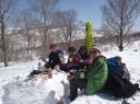 4日(日)・・朝食後7:35―(朝のゲレンデスキー滑走)―9:07第5リフト終点9:19―10:10神楽ヶ峰山頂10:35―10:55反射板―11:32田代スキー場―12:00和田小屋―(昼食・雪洞堀、ビーコン操作等体験)―和田小屋15:00―(ゴンドラ)―駐車場 合宿終了。