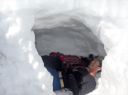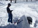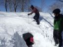 その後はK,Sはゲレンデへ、あとのK,K,Aは定番の雪洞堀・ビーコン操作体験をし、最後に雪洞内に入り込んで上からゾンデ棒で雪崩に遭って埋まっている遭難者を探し当てる模擬実習で合宿の締めくくりとした。