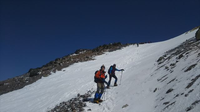 雪渓を登ります。少し急ですが、楽しい登りです。