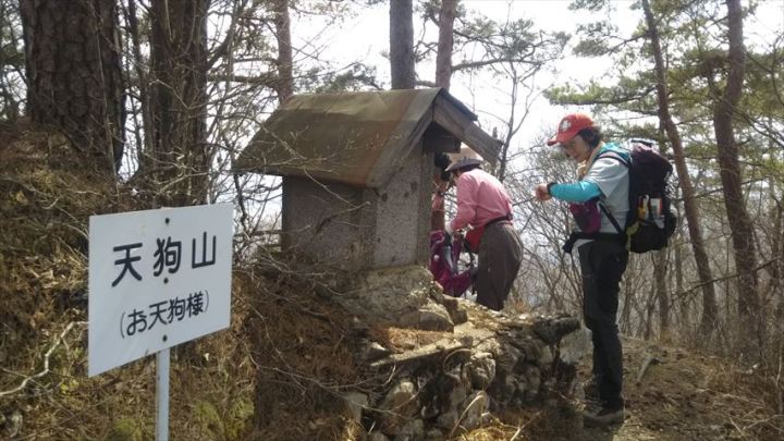 天狗山に到着、祠があった