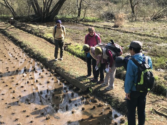 何かいるよ!と田んぼを覗き込んでいます