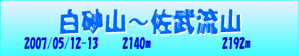 | 【山行期間】2007年5月12日〜13日 【山行目的】野反湖から白砂山にテン泊して佐武流山を往復する上信越国の山を縦走 【参加者】永見、佐野、礒田ほか上尾山の会3名 《コースタイム》 5月12日(土)発 4:50 東松山 発 5:58 野反湖駐車場 着 8:49 準備 発 9:22 晴れ ハンノ木沢 9:35 地蔵峠 10:10 地蔵山 10:39 昼食 11:32 堂岩山 12:35 白砂山 14:32 上信越国境尾根分岐 15:11 コル手前の尾根平坦地 着 15:20 5:58 テント設営 荷物整備 歓談 夕食 17:00 就寝 19:00 夜半の様子 5月13日(日) 起床 3:55 朝食 準備 コル手前の尾根平坦地 発 5:12 沖の西沢の頭 着 7:00 赤樋山 着 8:20 佐武流山 着 9:47 発 10:08 赤樋山 着 11:11 沖の西沢の頭 着 12:12 コル手前の 尾根平坦地 着 14:02 発 14:35 白砂山 着 15:00 堂岩山 着 16:36 地蔵山 17:56 地蔵峠 着 18:08 ハンノ木沢 18:25 野反湖駐車場 18:42 所要/計画 13:30 荷物整備 野反湖 発 18:53 入浴 着 19:30 発 20:00 東松山駅 着 22:40 |