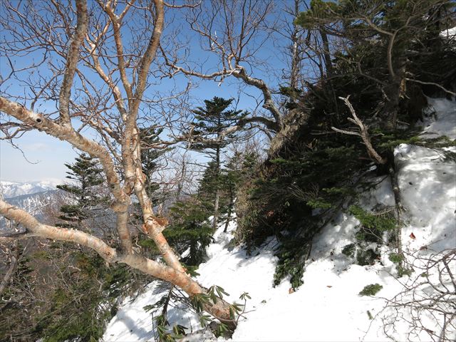 雪の重みで木が斜めに