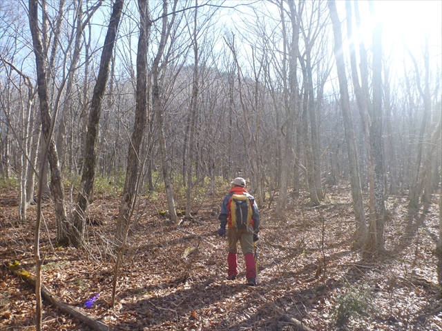 疎林の向こうに斜面が見える