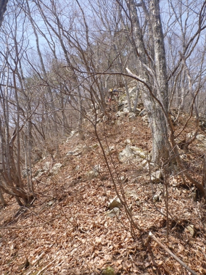 ブナ高木の先は岩に