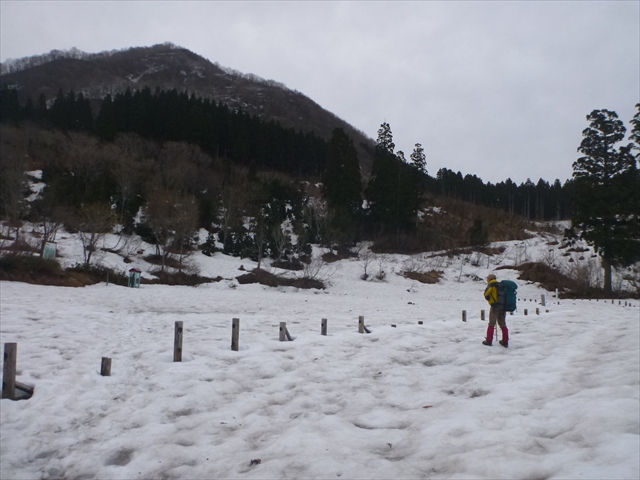 ここが林道末端の駐車場、左手に登山届ボックス