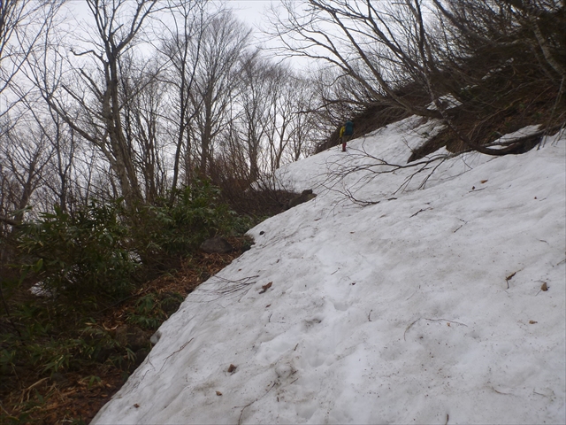 急斜面なりになった残雪に踏み跡