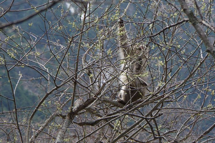 柔かい木の芽を食べる野猿