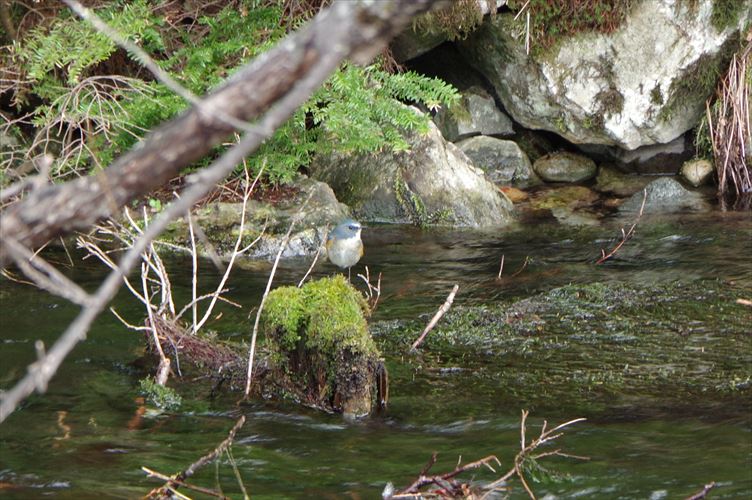 ルリビタキ(瑠璃鶲)雄:ビジターセンター手前清水川