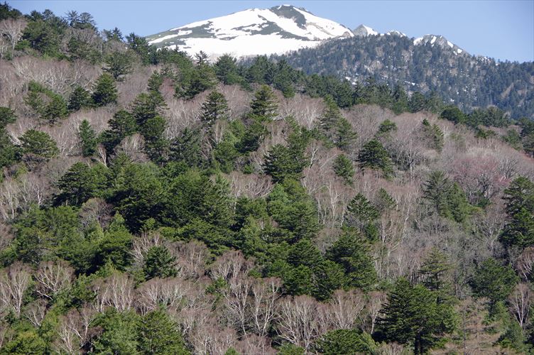 芽吹き前のダケカンバの樹叢、この時期特有の風景