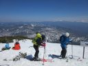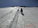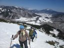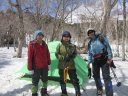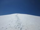 途中、風が強いところもあったが頂上は穏やかでゆっくり景色を楽しんだ。中には三重県から来たという人もいてこの山の人気の高さを再認識した。雪解けが早いので急いで高速道路を飛ばしてきたとのことだった。雪壁の下りはピッケルを支点にして慎重に下りた。雪が緩んできたので緊張した。この気温の高さではこの雪もあと何日も持たないと思った。