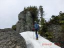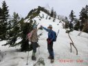 頂上直下の岩へのとりつきが想像以上に危ない感じであった。岩上の雪が落ちてしまって雪壁を登らないと岩の上に立てないのである。数年前にSさんが行った時とはまるで難易度が違うとのこと。同じ山でも雪の状態によって相当変わるといううことだ。
