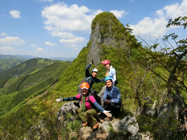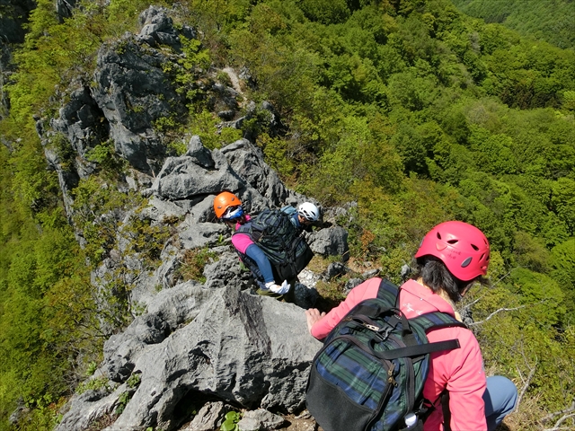 最初に東岳に登ります。岩場、痩せ尾根とこちらもなかなか険しいコースです。一ヵ所金具が取り付けてあり、足をかけるのに絶妙な位置です。