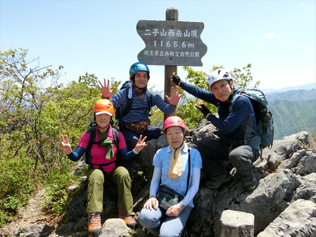 二子山登山口 8:35 ~ 股峠 9:45 ~ 10:15 東岳山頂 10:25 ~ 10:55 股峠 11:10 ~ 12:00 西岳山頂 12:30 ~ 魚尾道峠 14:00 ~ 車道登山口(下山口)14:45 ~ 15:00 二子山登山口