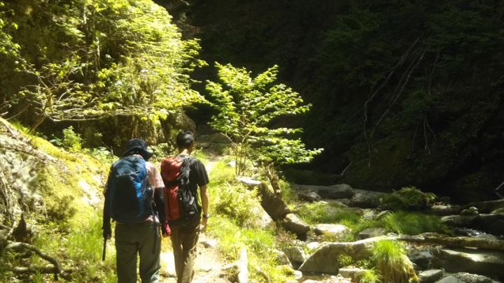 新緑の中を歩きます