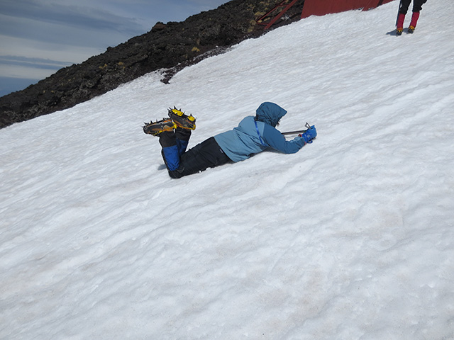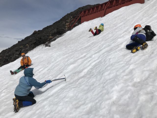 2日目 4:30 五合目駐車場 ? 7:55 八合目・アイゼン着装 8:25 雪訓開始 ? 9:10 八合目から下山 ?