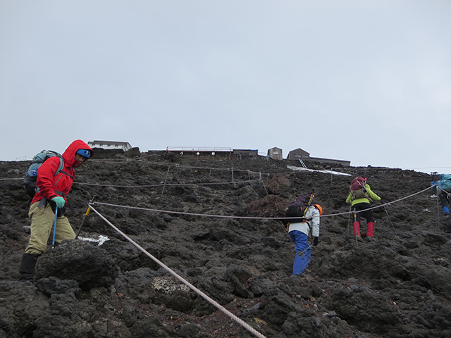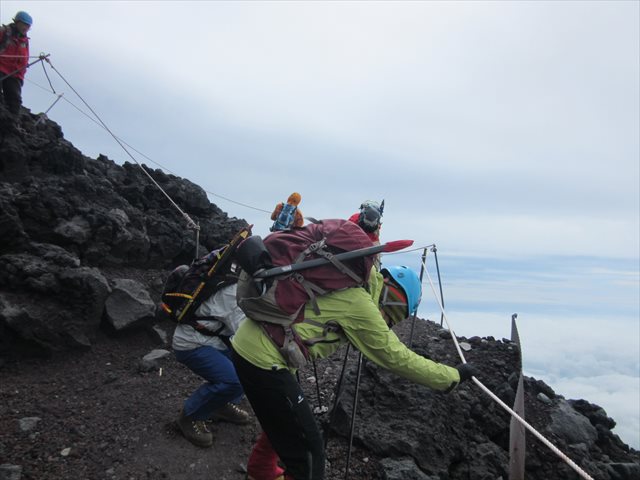 8合目から100mほど登った頃、あまりの風の強さにSさんが滑落の危険性を判断されて、ここまでとなりました。