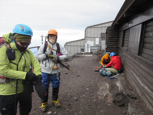 八合目に着いていよいよアイゼンを装着~(;´∀`)