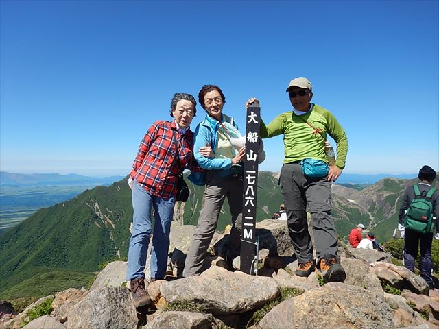 大船山に著着。風が強い