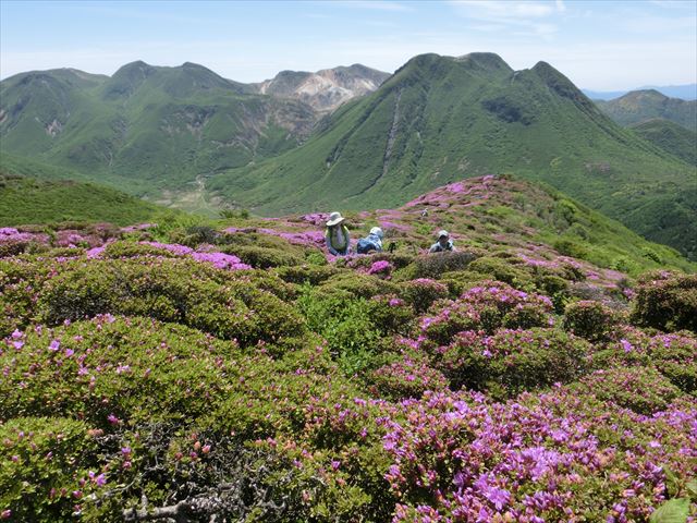向こうに見えているのは、大船山です