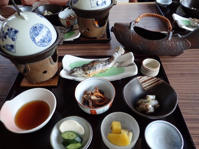 夕食と岩魚の骨酒 (一泊二食付き7,450円 安い!!!)