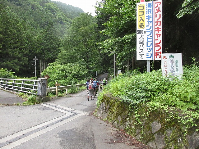 アメリカ村キャンプ場までは舗道を歩きます。キャンプ場を過ぎ少しずつ山に入り1人では絶対通りたくない
