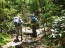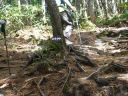 一日目は、梅雨の晴れ間で登山日和になった。到着した廻り目平では、アブの歓迎を受け、早々に出発する。小屋で話したらちょうど出始める頃だとのこと。西股沢の勢いのある透き通った水流に清々しい思いで、東側は、カラマツとコメツガ?シラビソ?のゆるやかな道を砂防提まで歩く。ここからが、本格的な登りだが、登山道はよく整備されていて、道間違えしないよう緑のロープも張られていた。