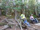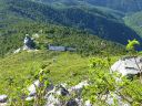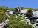 小屋近くになり、やっと道は平らになり、また、少し登って小屋に着いた。ザックを置き、山頂を目指す。両側は、葉にきれいなギザギザの入ったミヤマハンノキ、岩陰には、オオイワカガミが咲いていた。山頂からの展望は素晴らしく