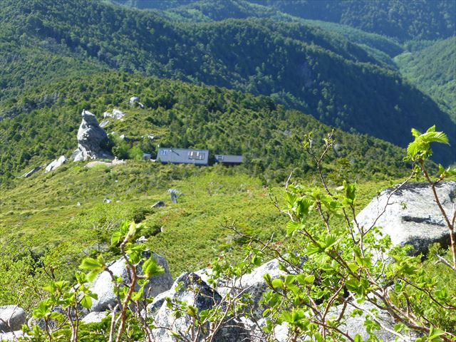 今日泊まる金峰山小屋が見える