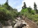 高谷池ヒュッテに到着後、リュックを預けて身軽になり火打山に向かいます。行く先々に咲いているきれいな花をカメラに収めていると、時間の経つのを忘れてしまいます。それより、なんと虫の多いこと!!虫よけスプレーをしてもほとんど効き目がなく、息をすると口の中にまで入ってきます(´;ω;`)。しょうがないのでタオルを被ってから帽子を被り、タオルの両端を口にくわえて虫が口の中に入ってこないようにしました(←この姿をご想像ください。。。)。 それでも顔を何か所かブヨに刺されてしまいました。でも、トラブルはありましたが無事に火打山に登頂できて満足の一日でした。