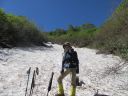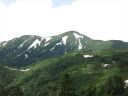 二日目・・・この日も朝から快晴。まだ雪を被っている北アルプスの山々を眺めてから出発しました。長助池分岐まで来ると雪渓が!時々滑落者が出ると聞いていましたが、雪が緩んできたせいか軽アイゼンでOKでした。