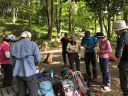 昨日の梅雨明けから一日目の日曜日、朝からギラギラの太陽の下、高麗駅から日和田山登山口の東屋に集合。Yリーダー、Kサブリーダーから山でのけが人の搬送方法を学びました。